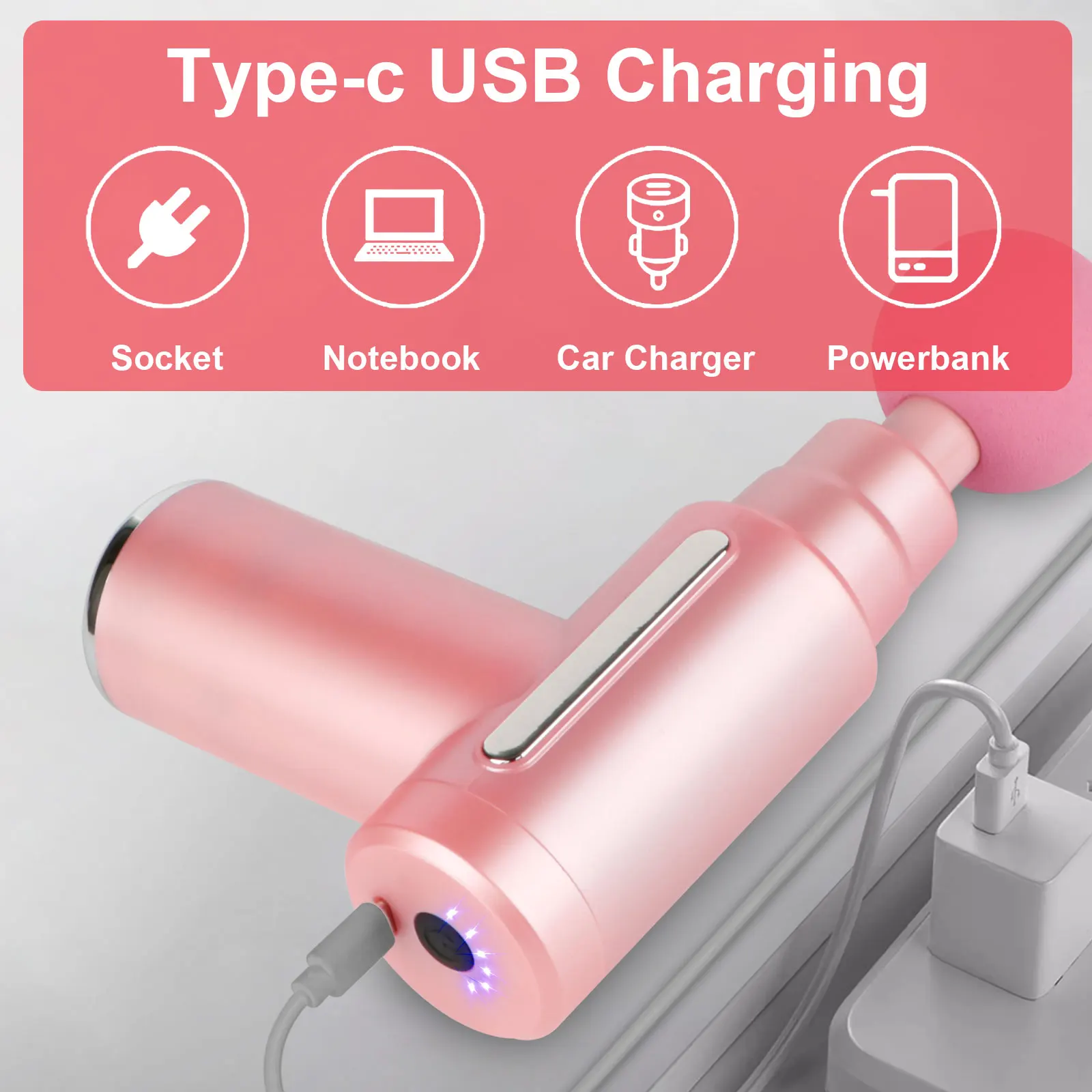 1pc Pink Massage gun Type-C rechargeable percussion on muscles percussion on back of neck head handheld hammer massager athletes