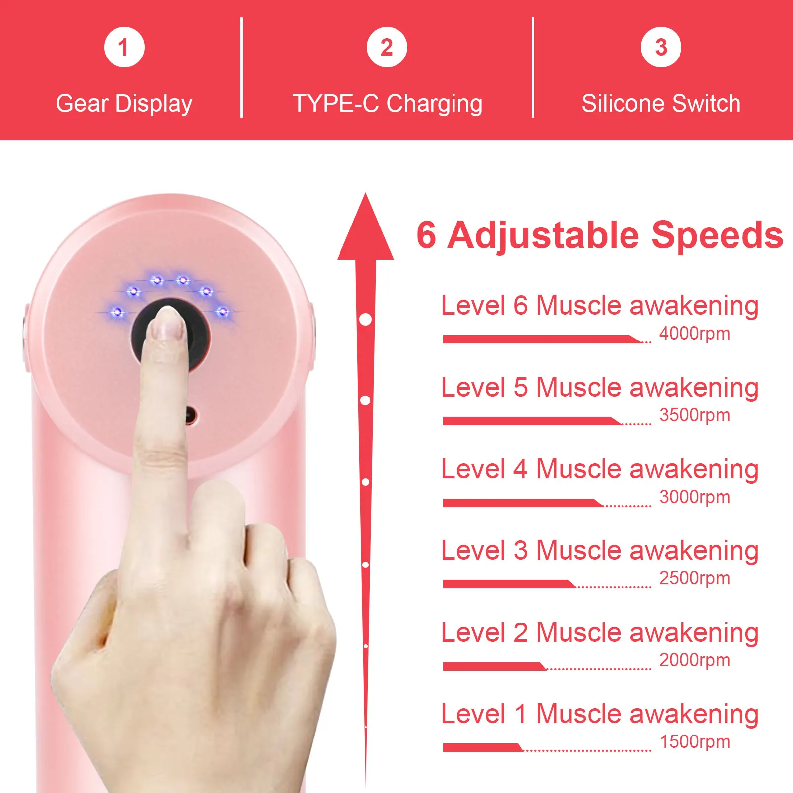 Mini Massage Gun use one button control.Enjoy deep tissue muscle massage for faster muscle recovery and more effective removal of soreness with our massage gun. It offers 6 different speed levels that helps relieve aching and stiff muscles, letting you feel refresh & relaxed!