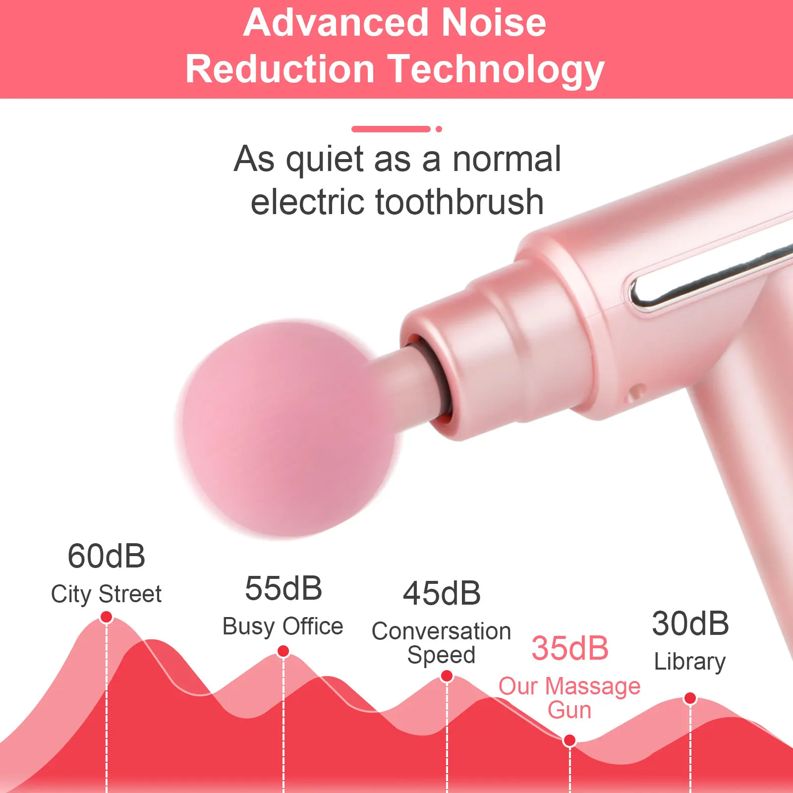 【 PORTABLE & QUIET MASSAGE GUN 】 About 35- 50dB