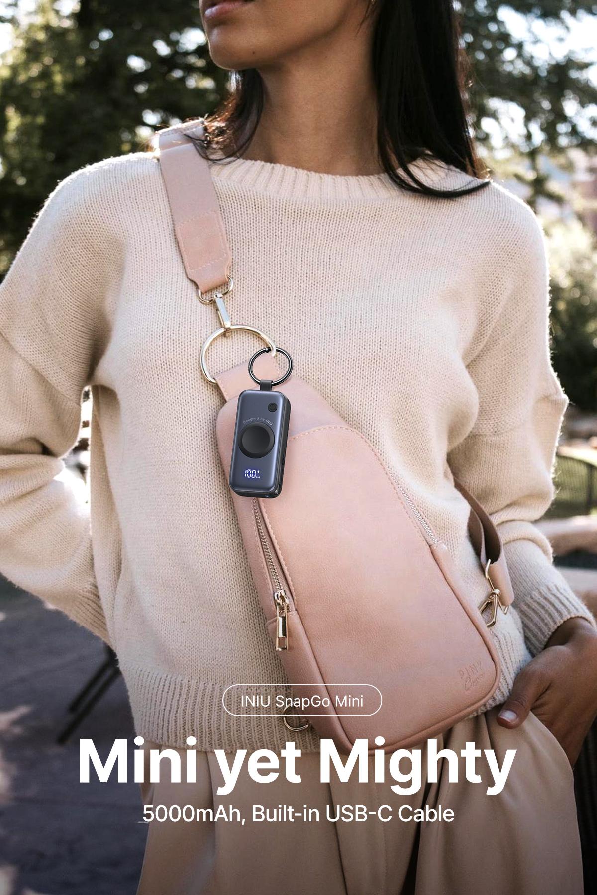 INIU P81 Snapgo Mini 5000Mah Power Bank with Keychain for Apple Watch Ultra SE 2/3 Series Iphone Air 8 ~ 17 Airpods Series 20W Built-In USB C Cable Fast Charge Portable Charger Travel EDC Battery Pack Phone Charger Valentine'S Day Girls Mom Couple Gift